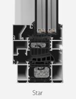 Hliníková okna Aliplast Star mají vynikající tepelně-izolační vlastnosti. Izolační vložky pro přerušení tepelného mostu jsou vyrobeny z inovačních materiálů. Okna dostala skryté panty. Využít lze zasklívání zvenčí. Aplikován je inovační systém odvádění vody z konstrukce. Konstrukční hloubka profilů je u rámu 90 mm.